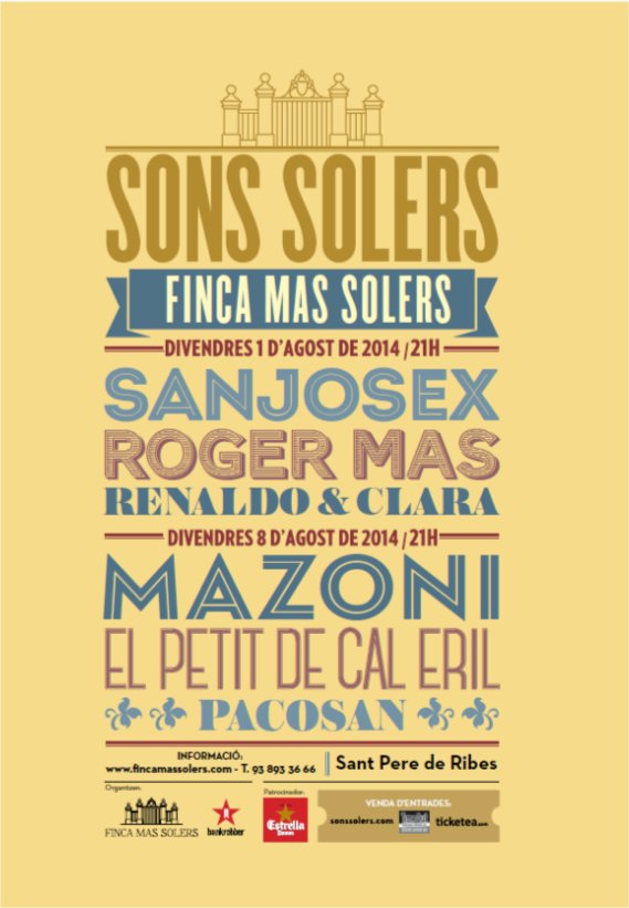 Des dels seus inicis, el Sons Solers ha estat sempre un festival diferent a la resta dels que se celebren a Catalunya. Nascut a l'estiu de 2014, el festival de Finca Mas Solers ha apostat per una programació de qualitat basada en la música feta al país i per una essència pròpia que el converteixen en el que anomenem SLOW FESTIVAL.